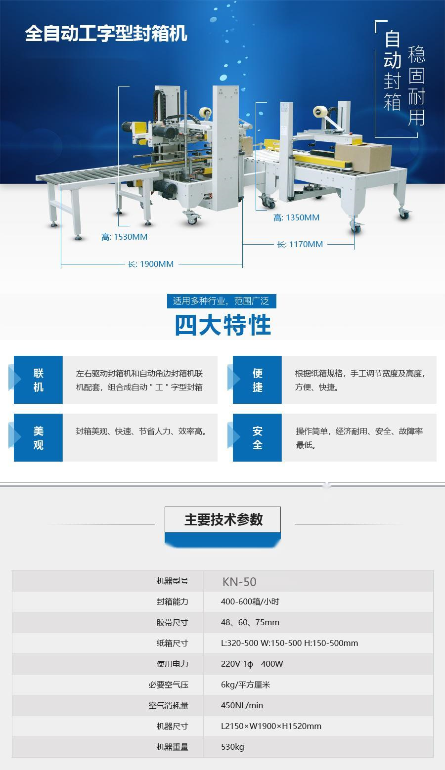 型號KN50-全自動工字型封箱機
